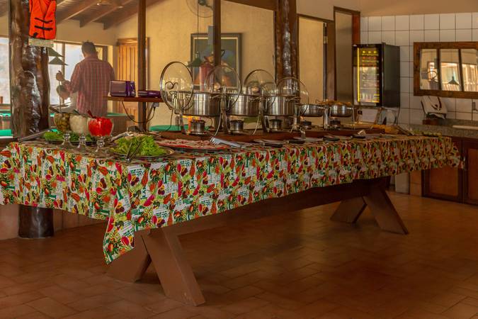 A hospedagem é pensão completa (com todas as refeições inclusas) e temos quartos aconchegantes para toda família, além de piscina, redário, salão de jogos, playground, espaço gourmet e muita área verde para momentos de descontração.