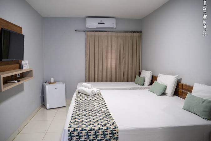 Os quartos em estilo rústico-chique são amplos, arejados e iluminados, e contam com todas as comodidades necessárias para uma estadia confortável e relaxante para toda família. O hotel ainda conta com piscina ao ar livre, jardins e café da manhã delicioso!