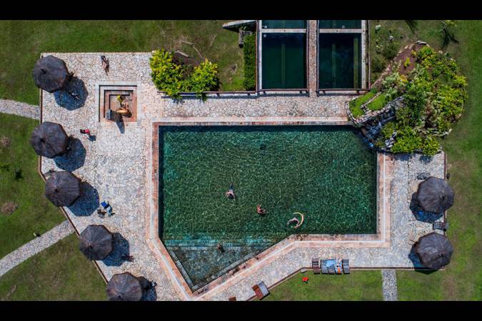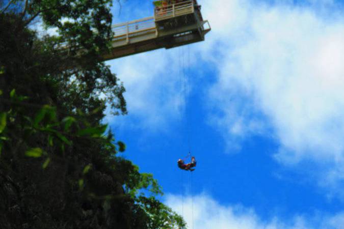 O local também abriga o maior rapel de plataforma do Brasil com 90 metros, com uma vista incrível da Serra da Bodoquena.