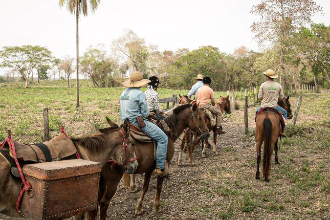 Esses verdadeiros safáris a cavalo ou a pé irão percorrer trilhas pelo Pantanal e parte de Cerrado, passando por campos, áreas alagadas e mata de Bacuris, em conexão plena com a natureza. O tempo é passado junto aos peões e guias, que depois do trajeto irão compartilhar um almoço típico com muitas histórias e memórias em um clima rústico bem pantaneiro.