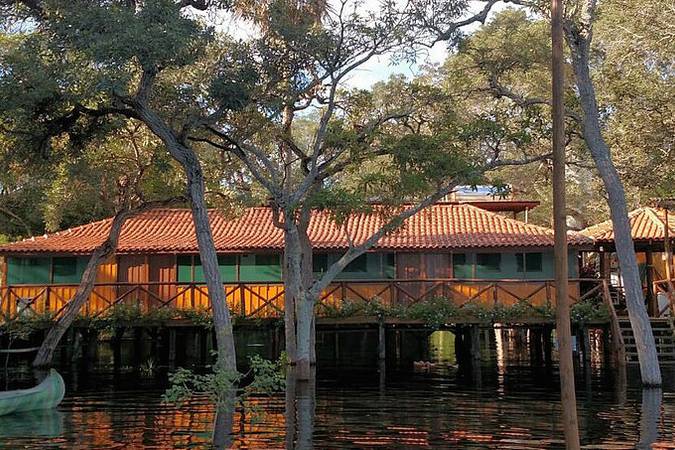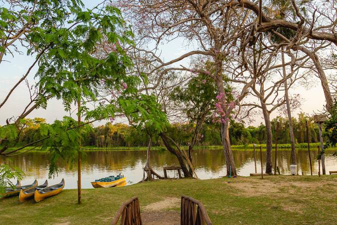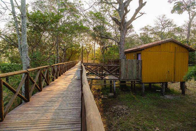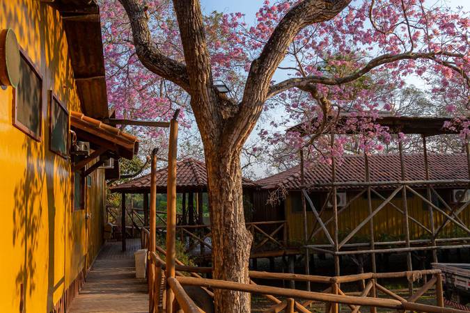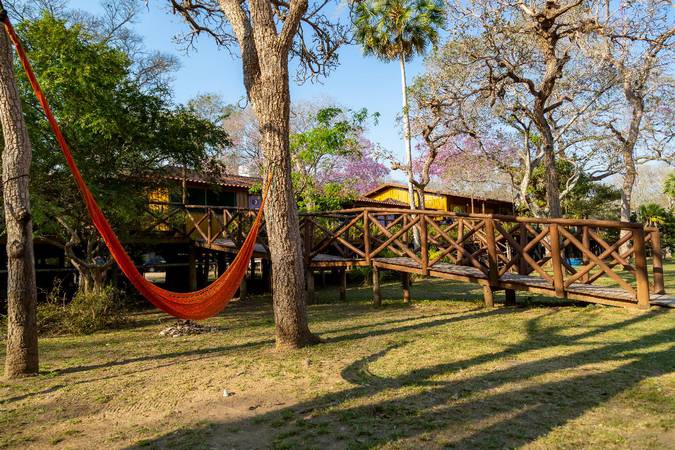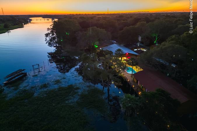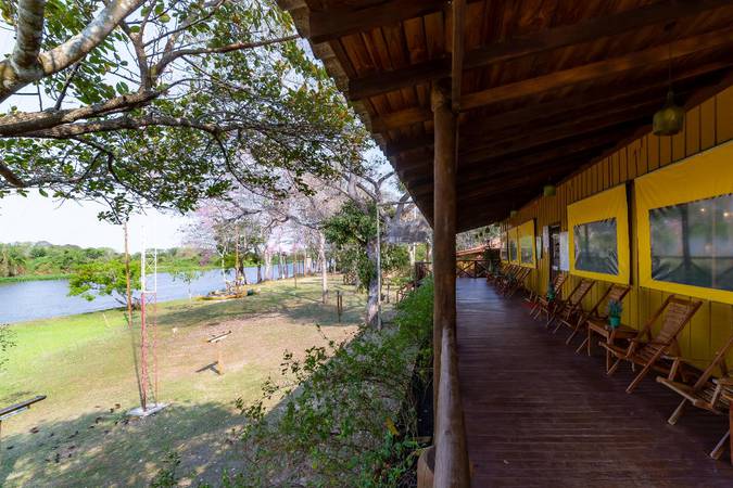 A pousada fica às margens do Rio Miranda, e foi construída em madeira sobre palafitas para integrar-se perfeitamente ao ambiente e também ao ciclo das águas, típico do ecossistema pantaneiro.