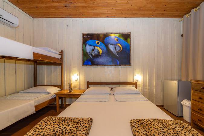 O Pantanal Jungle Lodge oferece quartos confortáveis para toda família e você ainda poderá desfrutar do restaurante, da piscina, da área de jogos, redário e toda ampla estrutura de lazer.