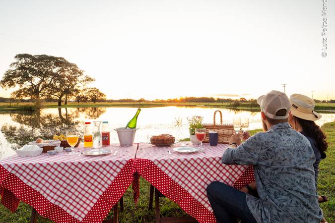 Além da hospedagem com pensão completa, oferecem muitas vivências e passeios, como o safári fotográfico, focagem de jacarés, ordenha, tour a cavalo, passeio de charrete, observação de aves, pesca de piranhas, tour de barco, entre outros.